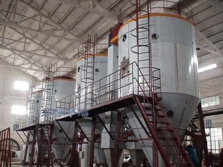 2.ろ過・加熱後、ドライヤー上部のエアディストリビューターに空気が入ります、スパイラル状の熱風が乾燥室に均等に流入します。 タワー本体の上部にある高速遠心噴霧器を介した材料液体は、非常に細かいミスト液体ビーズに(回転)スプレーし、熱風と接触し、非常に短時間で完成品として乾燥させることができます。 完成品は、乾燥塔の底部とサイクロン分離器から、排気ファンで空気を抜くことにより連続的に排出されます。